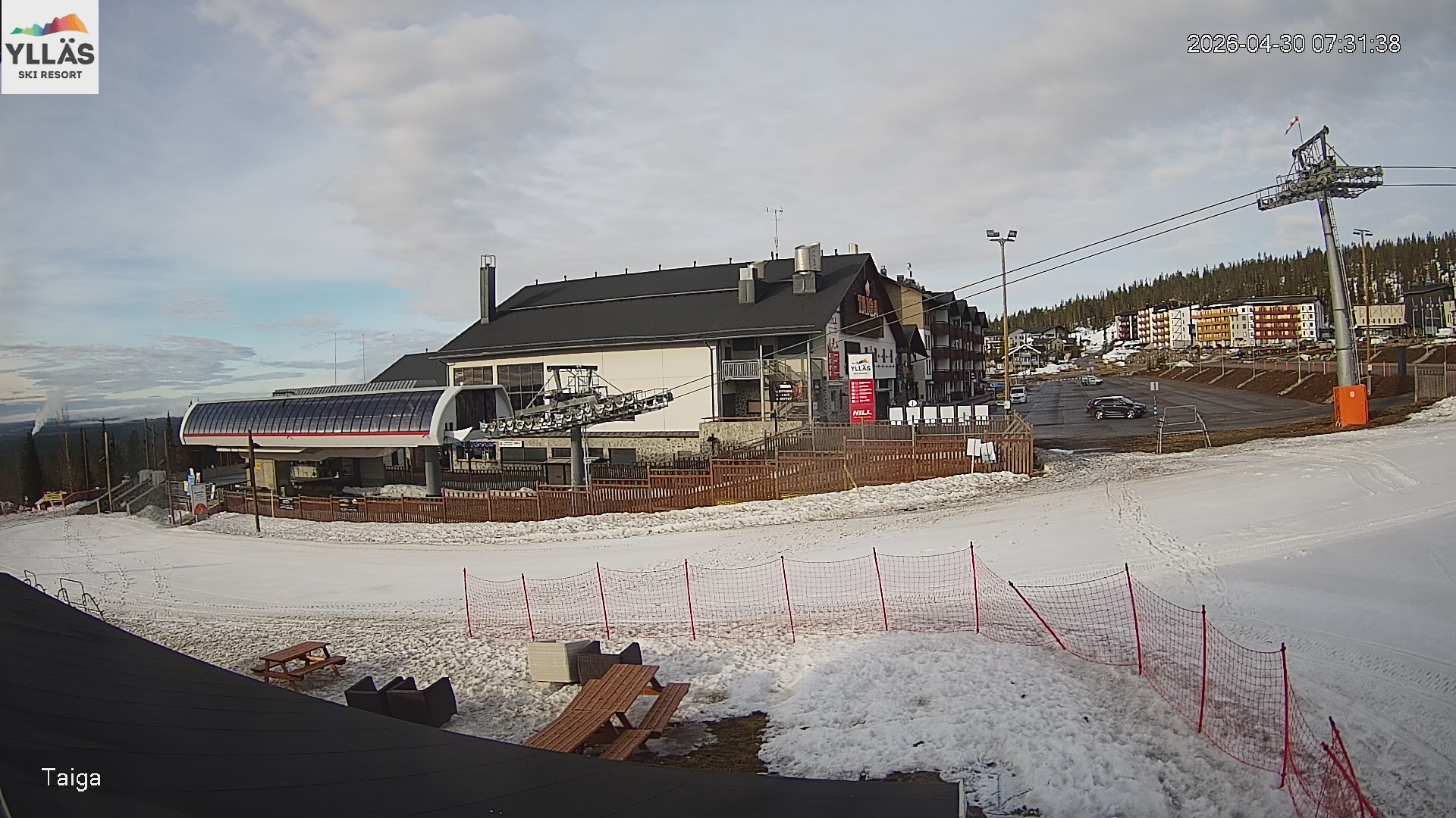 Archiviertes Webcam Bild: Ylläs: Gondelstation am Taiga Restaurant am 30.04.2026 um 07:59 Uhr 08:00