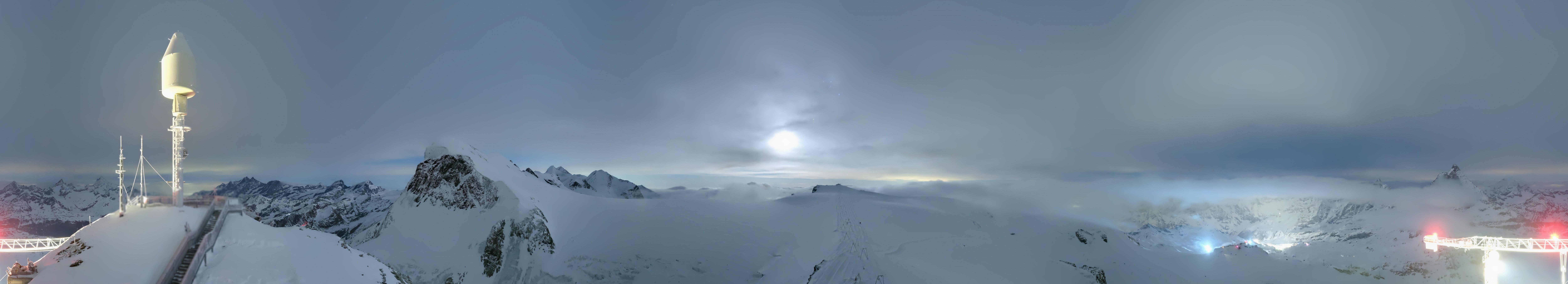 Archiviertes Webcam Bild: Zermatt Kleinmatterhorn: Gletscherskigebiet am 11.03.2026 um 04:33 Uhr 04:00