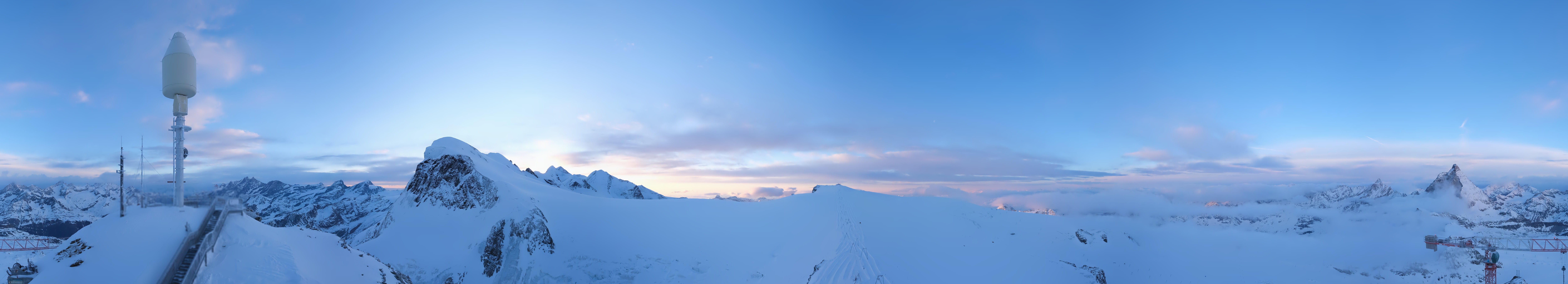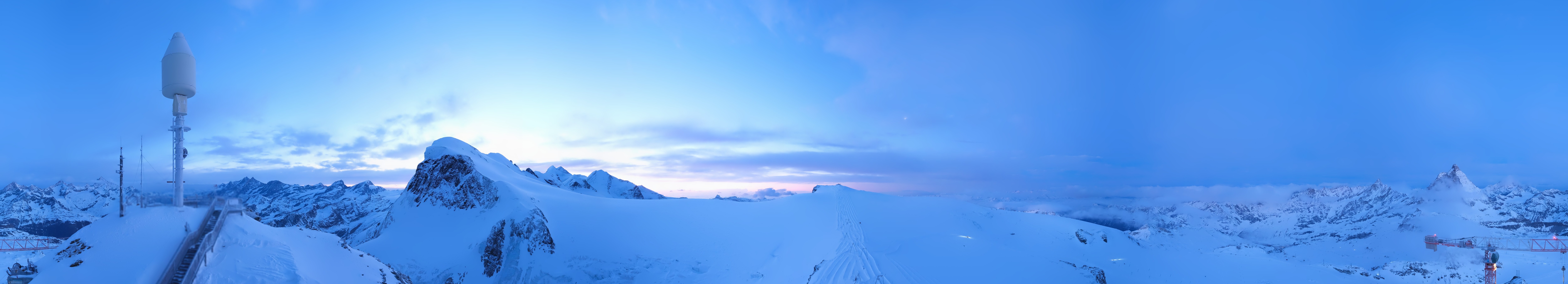 Archiviertes Webcam Bild: Zermatt Kleinmatterhorn: Gletscherskigebiet am 11.03.2026 um 06:33 Uhr 06:00