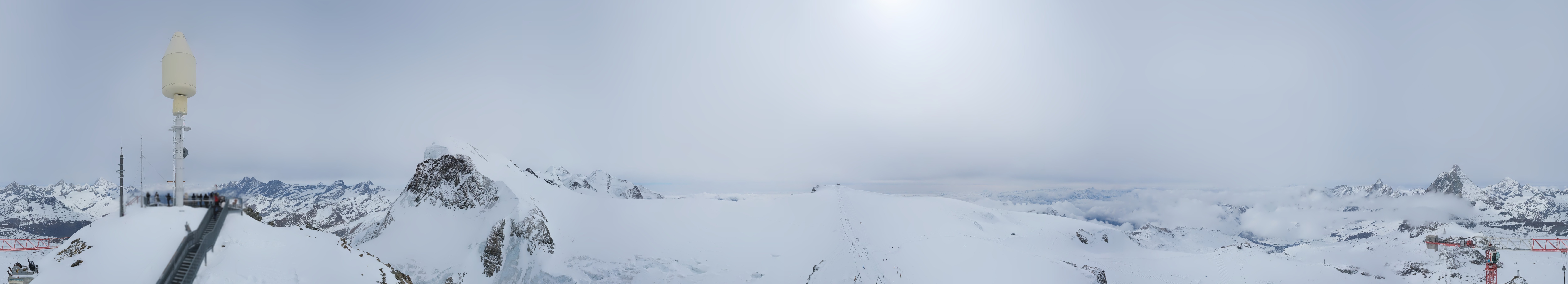 Archiviertes Webcam Bild: Zermatt Kleinmatterhorn: Gletscherskigebiet am 11.03.2026 um 16:33 Uhr 16:00