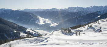 Abwechslungsreiche Pisten und eine einmalige Aussicht auf Lienz und die umliegende Bergwelt erwarten dich beim Skifahren am Zettersfeld. © Peter Märkl