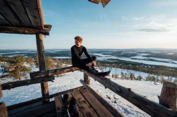Als Midlayer unter der Caurus Wool trägt Nico die Skutvik Jacke. Sie ist auch für Skitouren als Midlayer gut geeignet, da sie mit einem Wollanteil von 40 Prozent warmhält, aber gleichzeitig atmungsaktiv ist. Für ein angenehmes Tragegefühl sorgen das elastische Material und der Kinnschutz. An der Brust bietet sie außerdem eine kleine Tasche mit nahtfeinem Reißverschluss.