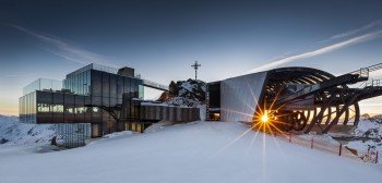 Spektakuläre Glasfassade: das Gourmetrestaurant ice Q. © Bergbahnen Sölden