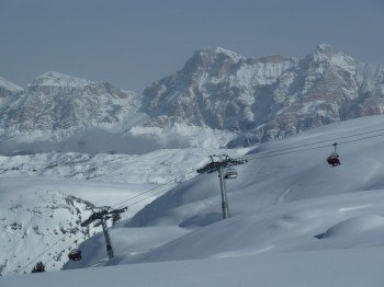 Erst im Tal, wo ein Pferdegespann die Skifahrer zum Skilift nach Armentarola zurückbringt, strahlt wieder die Sonne. Wer seinen Besuch am Lagazuoi noch verlängern will, der kann einen Abstecher in das angrenzende Skigebiet Cortina d'Ampezzo machen. Für uns geht es an diesem Tag aber wieder zurück nach Alta Badia.