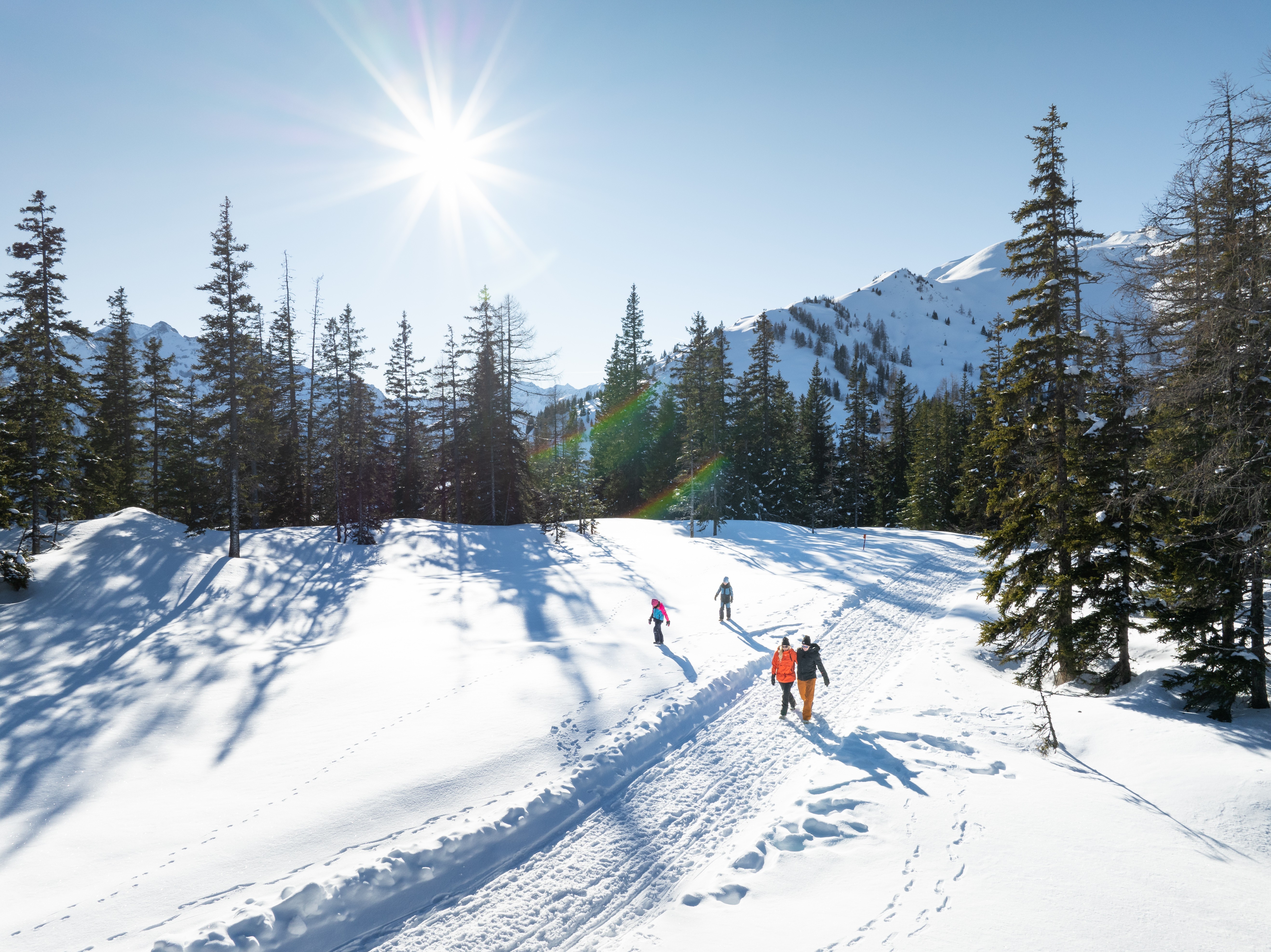 Nach den ersten Schwüngen laden die gemütlichen Hütten zum Verweilen ein, wo du auf sonnigen Terrassen den Blick über die verschneite Bergwelt schweifen lassen kannst. Für alle, die nach dem Skitag noch Energie haben, bieten Winterwanderwege und Rodelstrecken zusätzliche Abwechslung – oder du entdeckst bei einer Skitour die stille Seite des Winters im hinteren Talschluss.