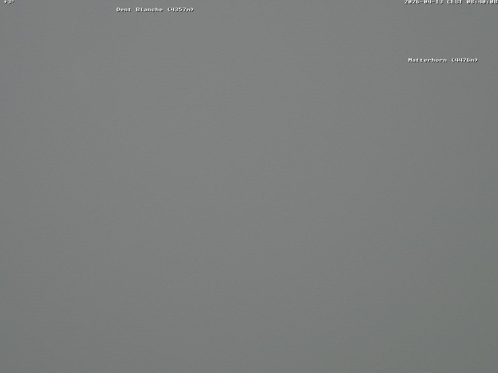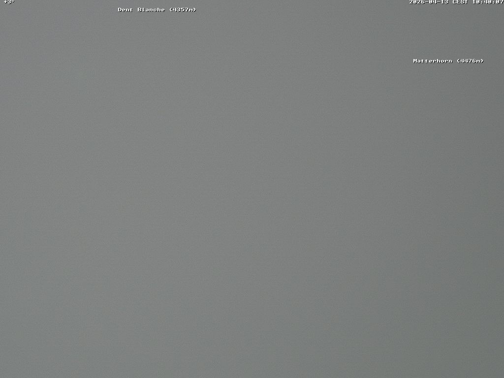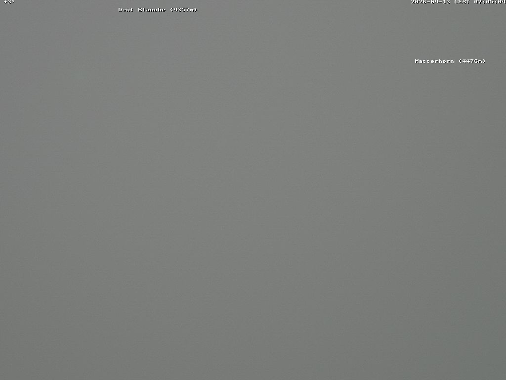 Archiviertes Webcam Bild: 4 Vallées: Blick Richtung Dent Blanche und Matterhorn am 13.04.2026 um 04:52 Uhr 04:00