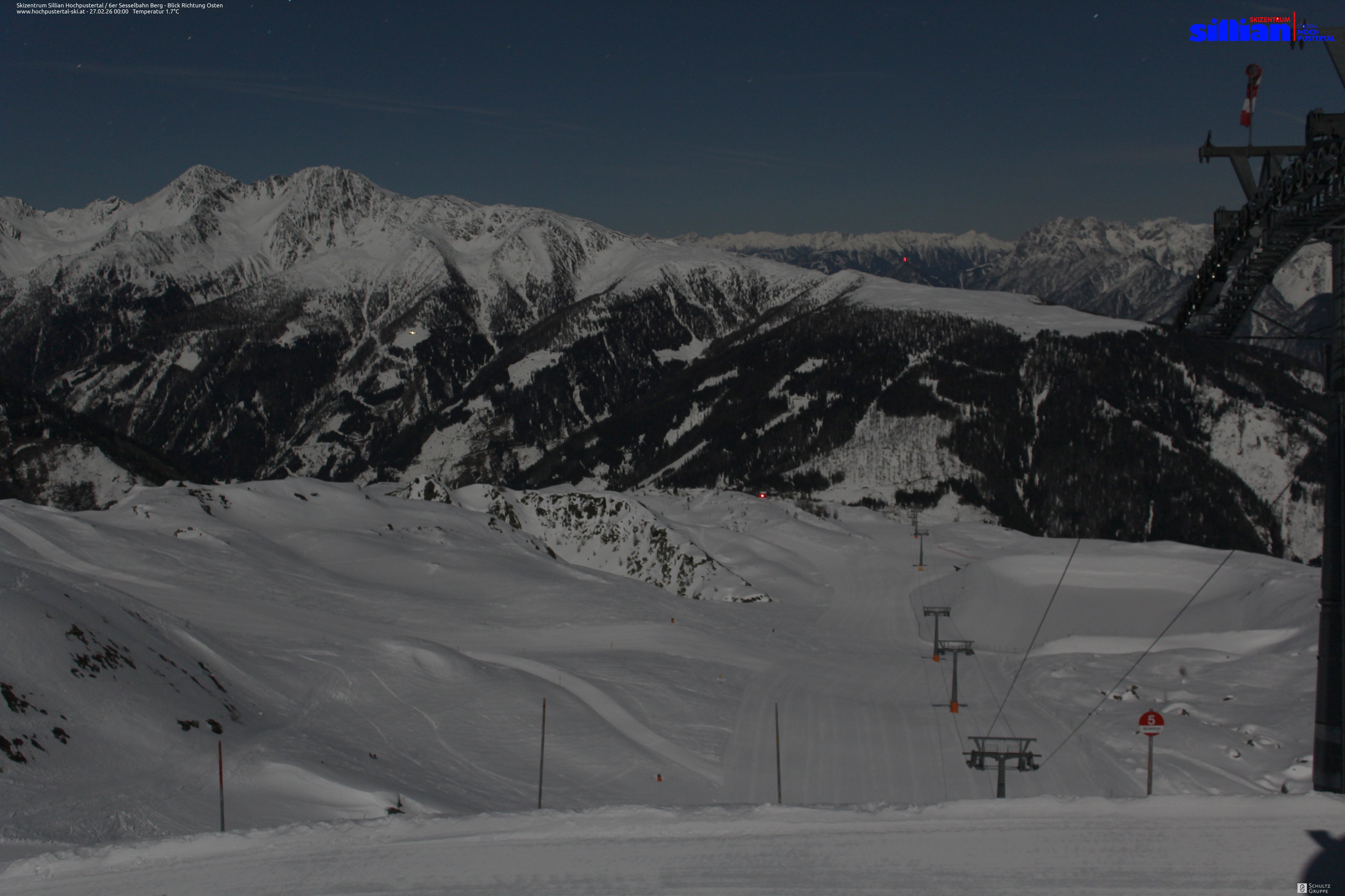 Aussicht von der Sesselbahn Thurntaler (6 Personen) über das Skigebiet Sillian Hochpustertal.