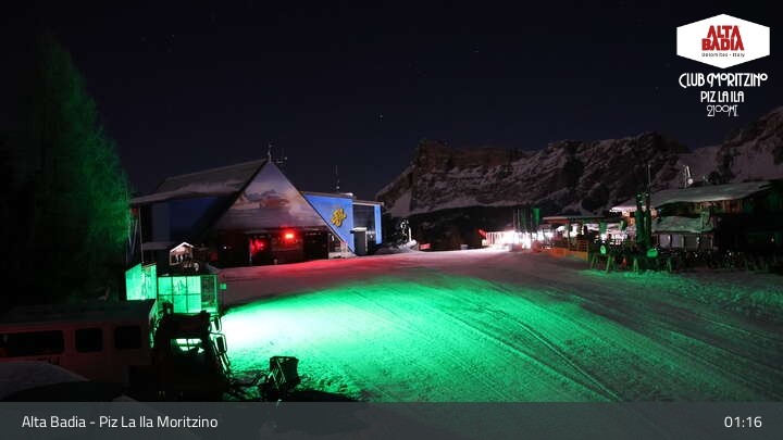 Die Webcam befindet sich auf dem Piz La Ila im Skigebiet Alta Badia und blickt auf den Club Moritzino.