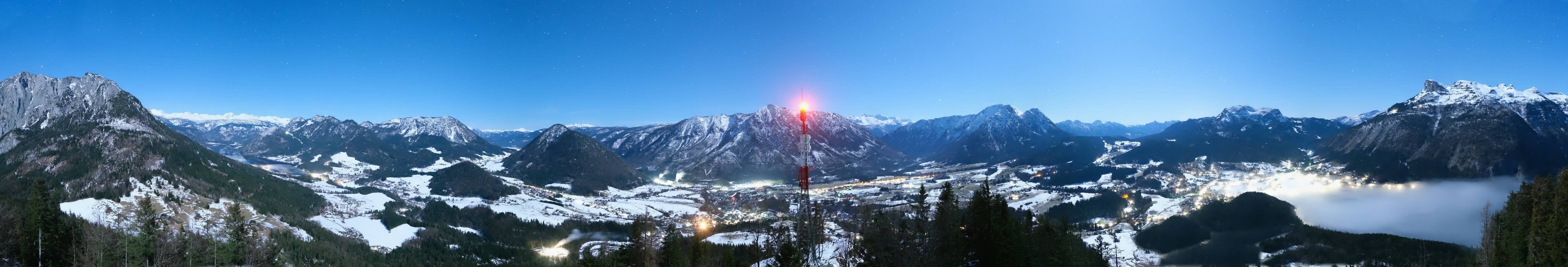 Die Webcam blickt von der Tressensteinwarte über Altaussee und den Altausseer See hinüber zum Skigebiet Loser. In südlicher Richtung ist auch Bad Aussee zu sehen und im Osten der Grundlsee.