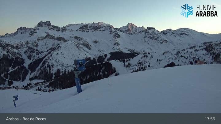 Die Webcam befindet sich an der Bergstation der Sesselbahn Arabba-Monte Burz im Skigebiet Arabba. Sie zeigt das Bergrestaurant Rifugio Burz und blickt hinüber zu den Pisten am Le Pale Sessellift.