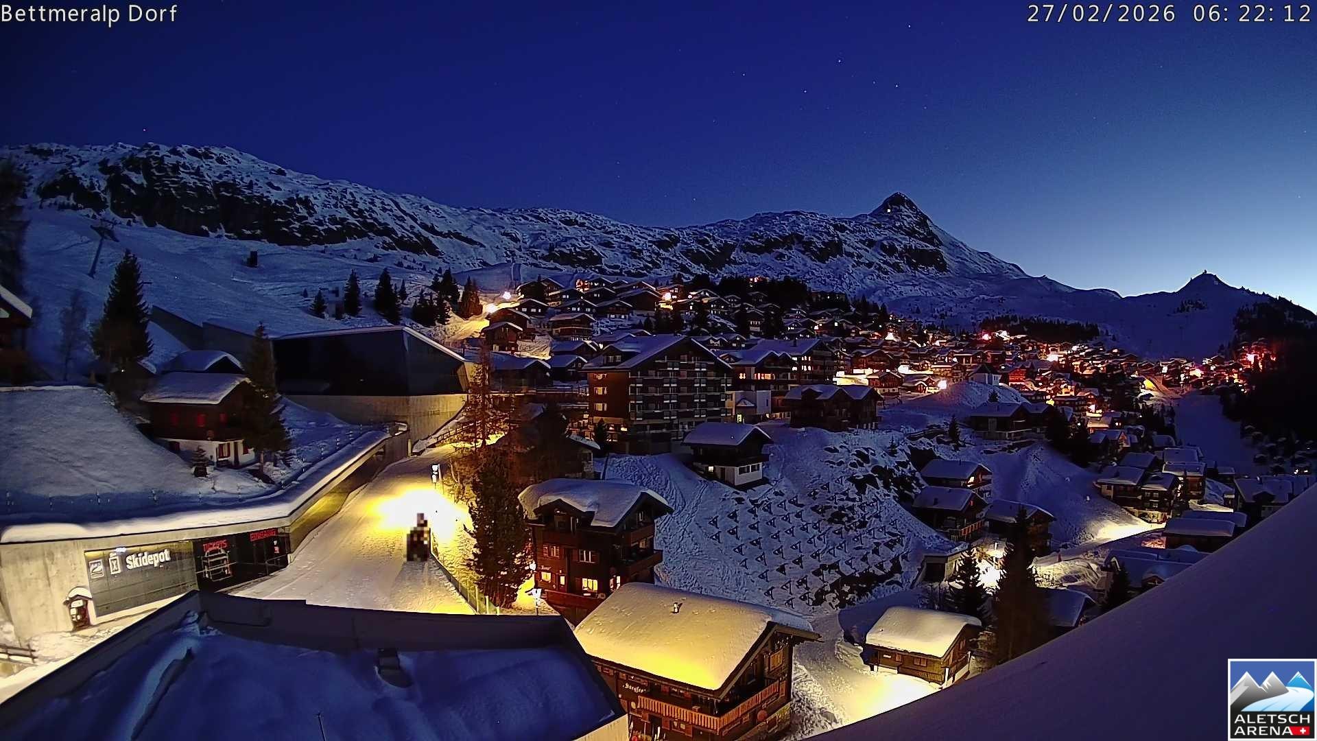 Archiviertes Webcam Bild: Aletsch Arena: Bettmeralp Dorf am 27.02.2026 um 04:26 Uhr 04:00