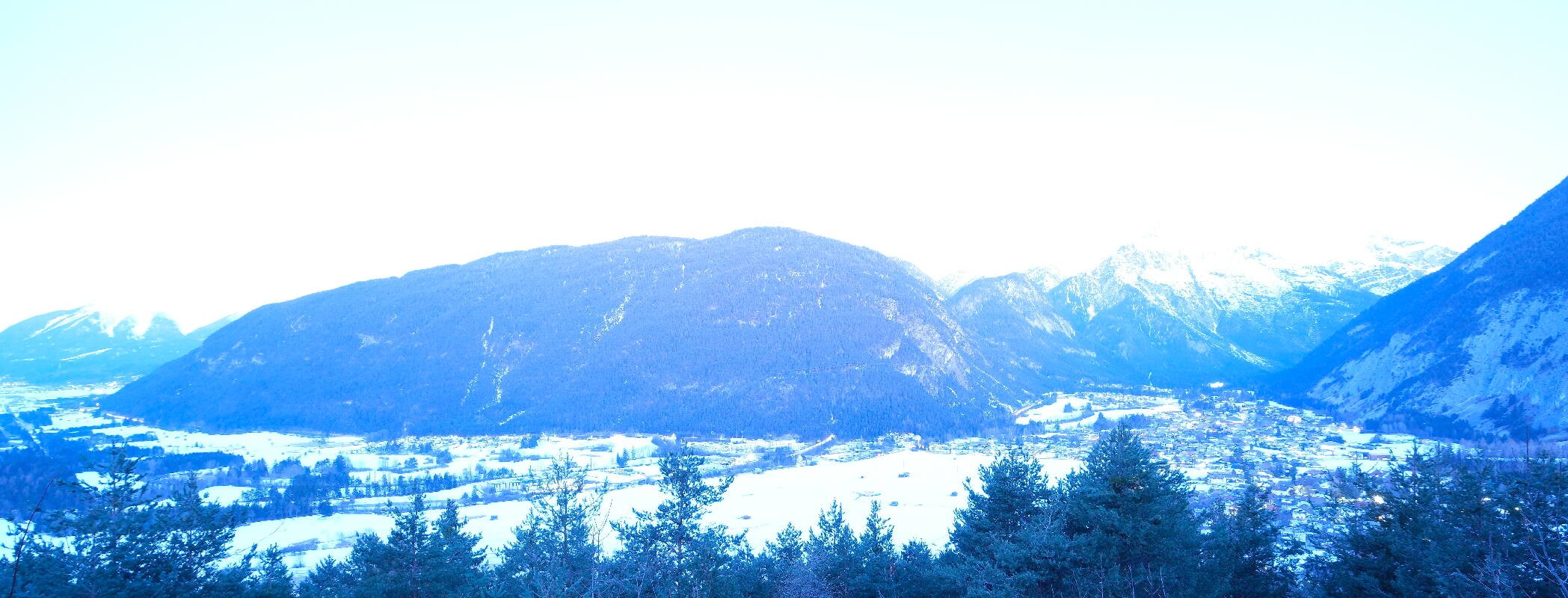Ausblick von der Aussichtsplattform an der B189 über Dormitz nach Nassereith am Fernpaß.