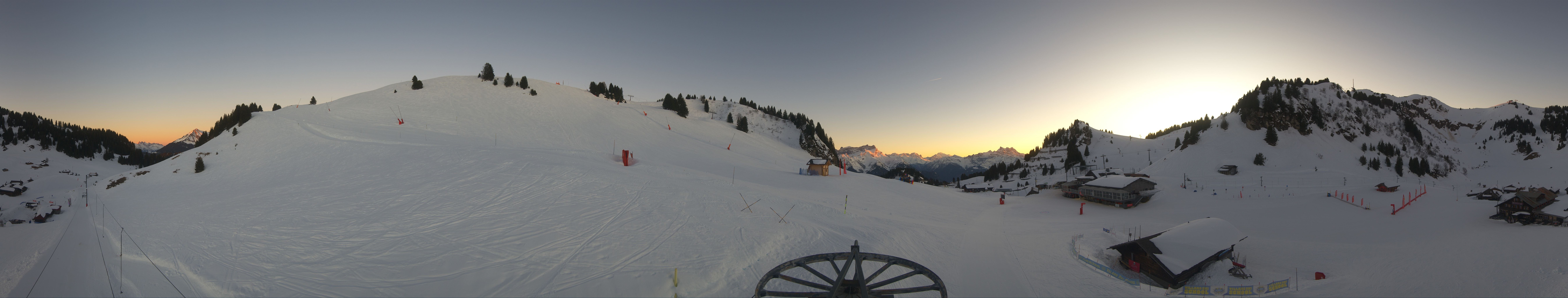 Die Kamera befindet sich auf einer Höhe von 1.810m und zeigt die Pisten und Liftanlagen rund um Bretaye in Villars.