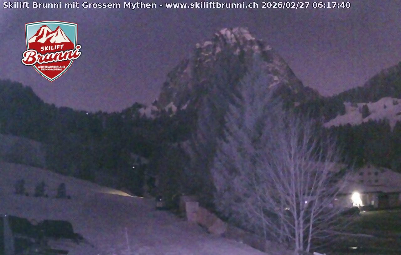 Archiviertes Webcam Bild: Brunni - Blick zu den Mythen am 27.02.2026 um 04:17 Uhr 04:00
