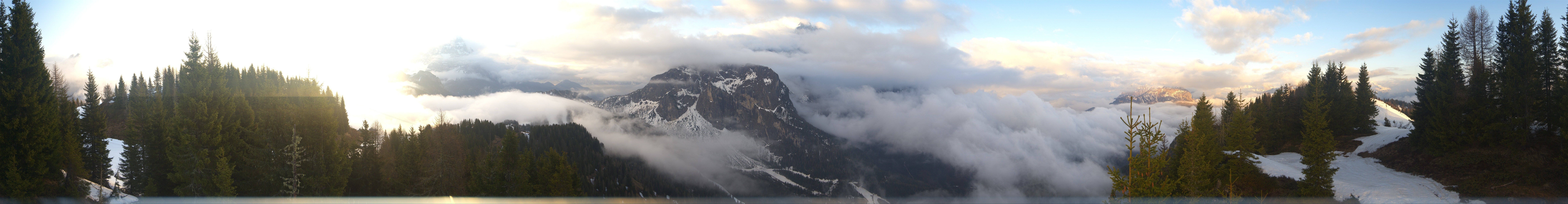 Die Panoramakamera blickt von der Bergstation des Fertazza Sessellifts auf die umliegende Bergwelt Bellunos. Zu sehen sind u.a. die Gipfel des Monte Pelmo (3168 m) und Monte Civetta (3220 m).