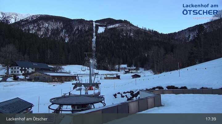 Blick von der Talstation der 4er Sesselbahn Eibenkogl im Skigebiet Lackenhof am Ötscher in Niederösterreich.