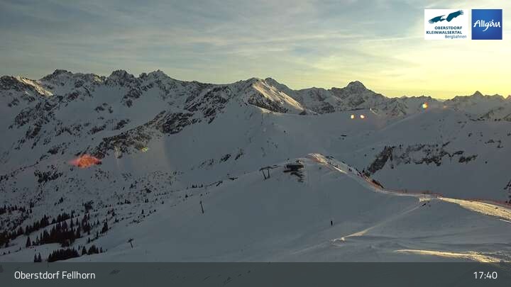 Aktuelle Aufnahmen der Fellhornbahn auf einer Höhe von 1967 Metern und ein Rundumblick in das bayerische Skigebiet Oberstdorf.