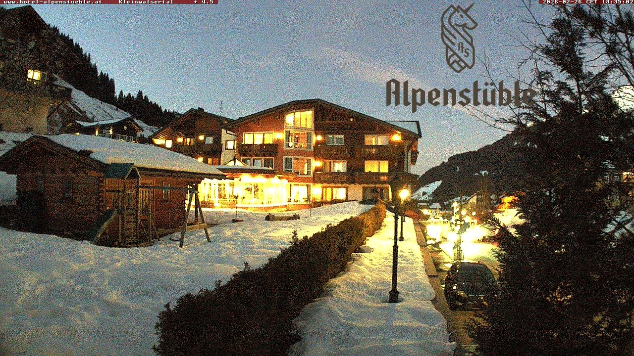 Archiviertes Webcam Bild: Hotel Alpenstüble, Mittelberg am 26 Feb 2026 um 18:20 Uhr Aktuell