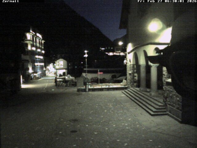 Archiviertes Webcam Bild: Zermatt Kirchplatz am 27.02.2026 um 02:39 Uhr 02:00