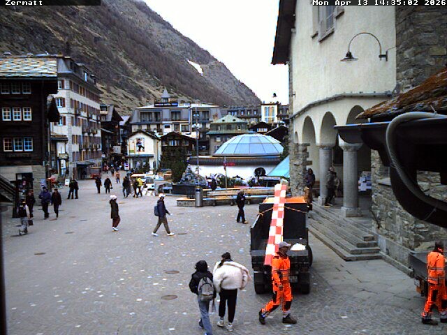 Archiviertes Webcam Bild: Zermatt Kirchplatz am 13.04.2026 um 14:25 Uhr Aktuell