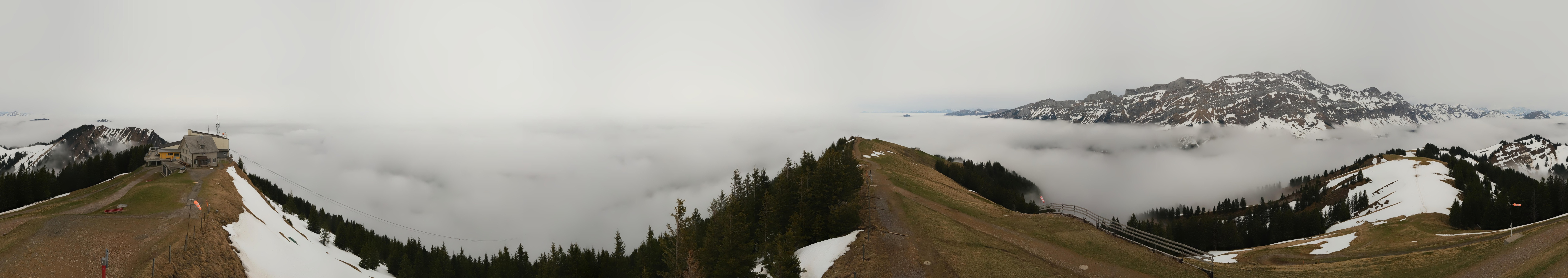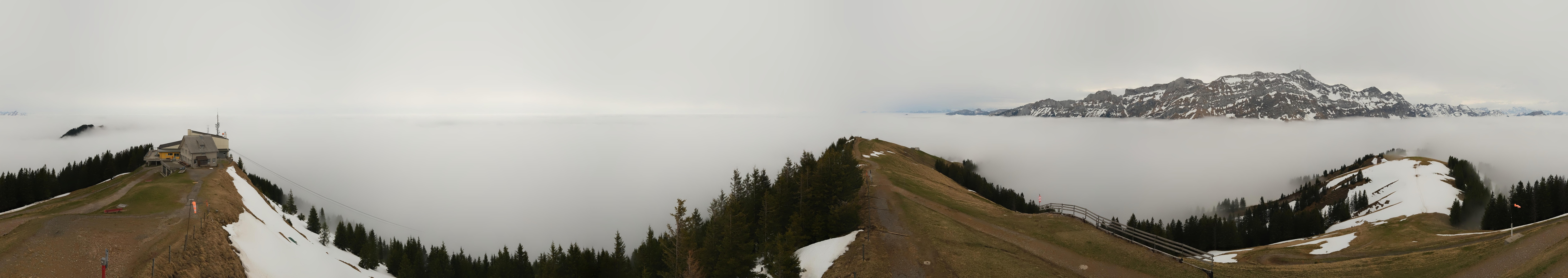 Traumhafter Panoramablick vom Gipfel des Kronbergs im Appenzellerland. Auf den Familien- und Freizeitberg führt eine Luftseilbahn. Im Winter kann man hier den längsten Schlittelweg der Ostschweiz erleben, während im Sommer Wanderungen sehr beliebt sind. Im Tal befindet sich zudem ein Zipline-Park, eine Märliwelt und eine Bobbahn.