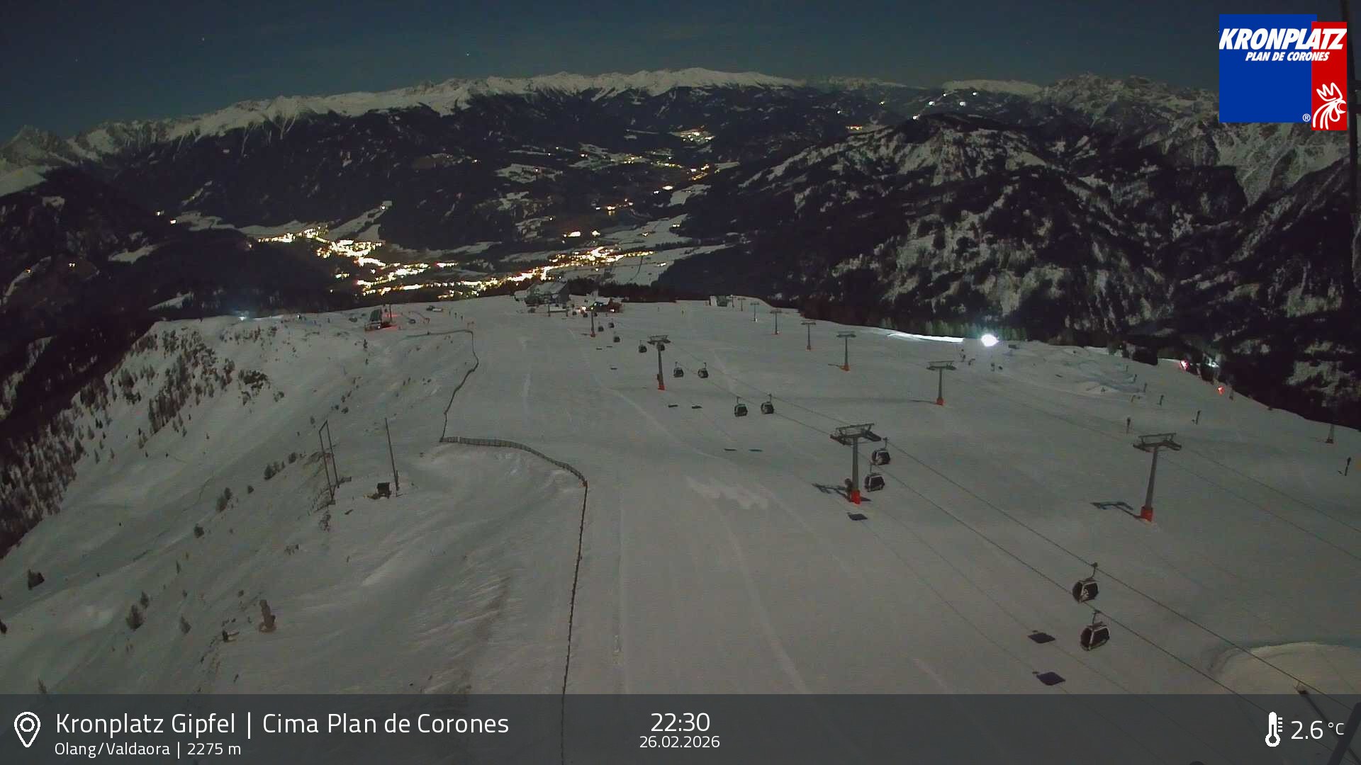 Webcam Kronplatz: Blick auf Olang, 2,262 m