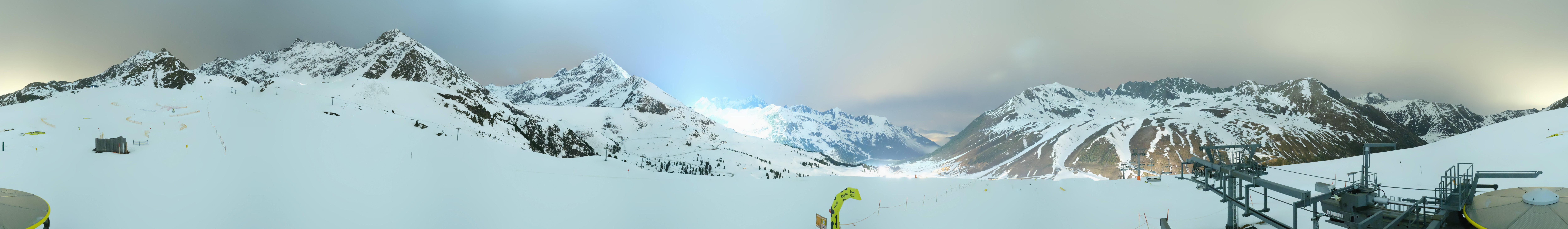 Die Kamera befindet sich an der Bergstation der Wiesbergbahn im Skigebiet Kühtai. Zu sehen ist auch der 4er-Sessellift DreiSeenBahn im Hintergrund.