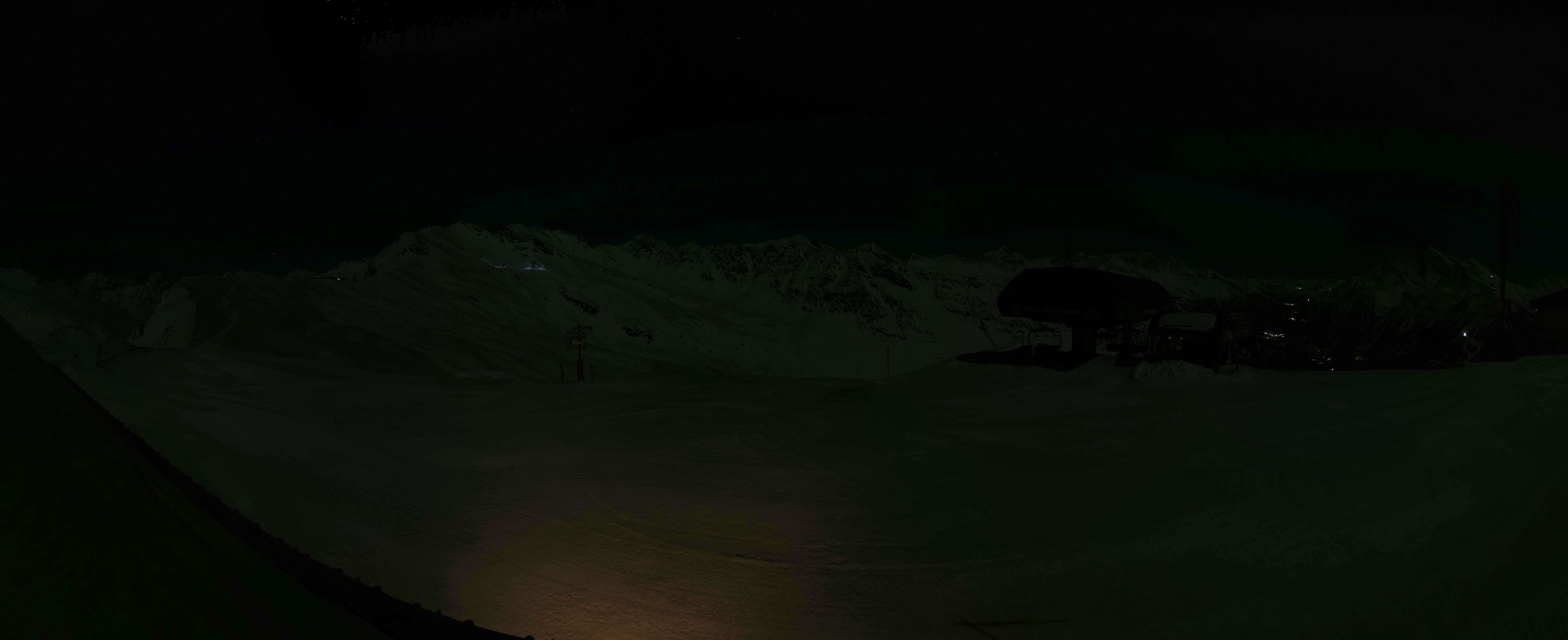 Aussicht vom Roc Noir auf die Sesselbahn Roches Noir im Skigebiet La Rosiere.