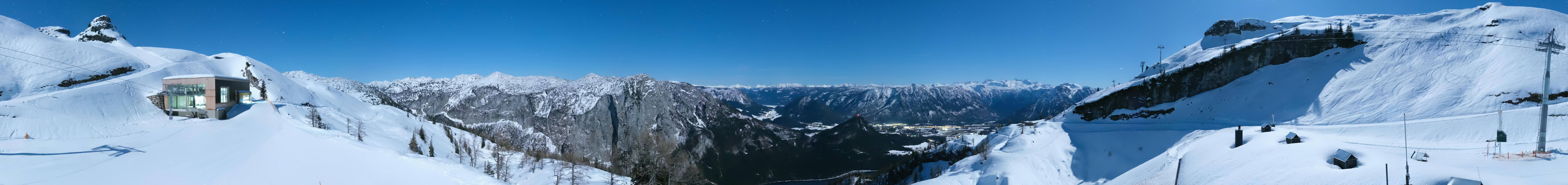 Genieße den Ausblick von der Loser Alm im Skigebiet Loser Altaussee nach Südwesten über die Panoramastraße ins Tal nach Fischerndorf.