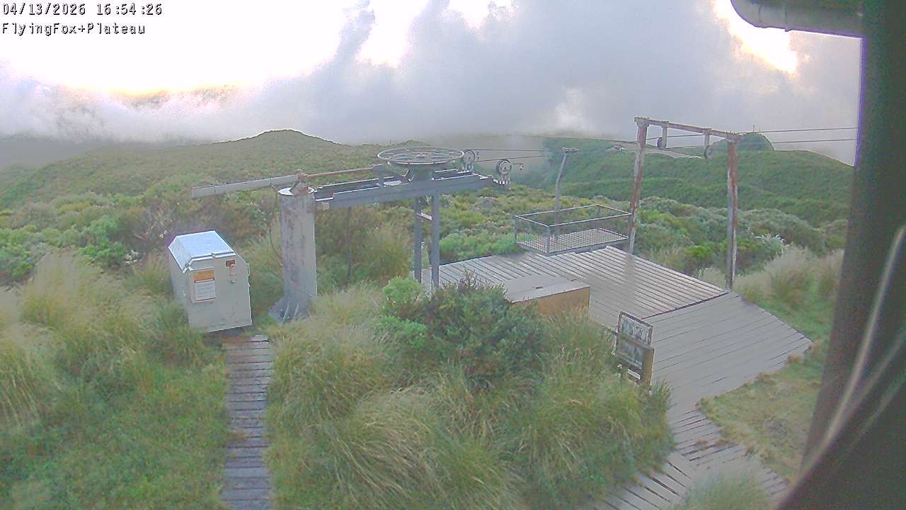 Installiert an der Talstation des Schlepplift eröffnet diese Webcam die Sicht auf den Lift und die Piste am Vulkan Taranaki im Skigebiet Manganui (Neuseeland).