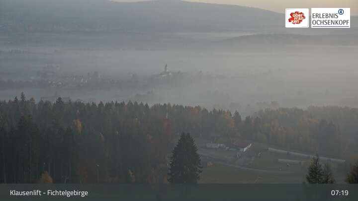 Die Webcam befindet sich an den Klausenliften im Fichtelgebirge und blickt über Mehlmeisel bis zum Schneeberg und dem Ochsenkopf.
