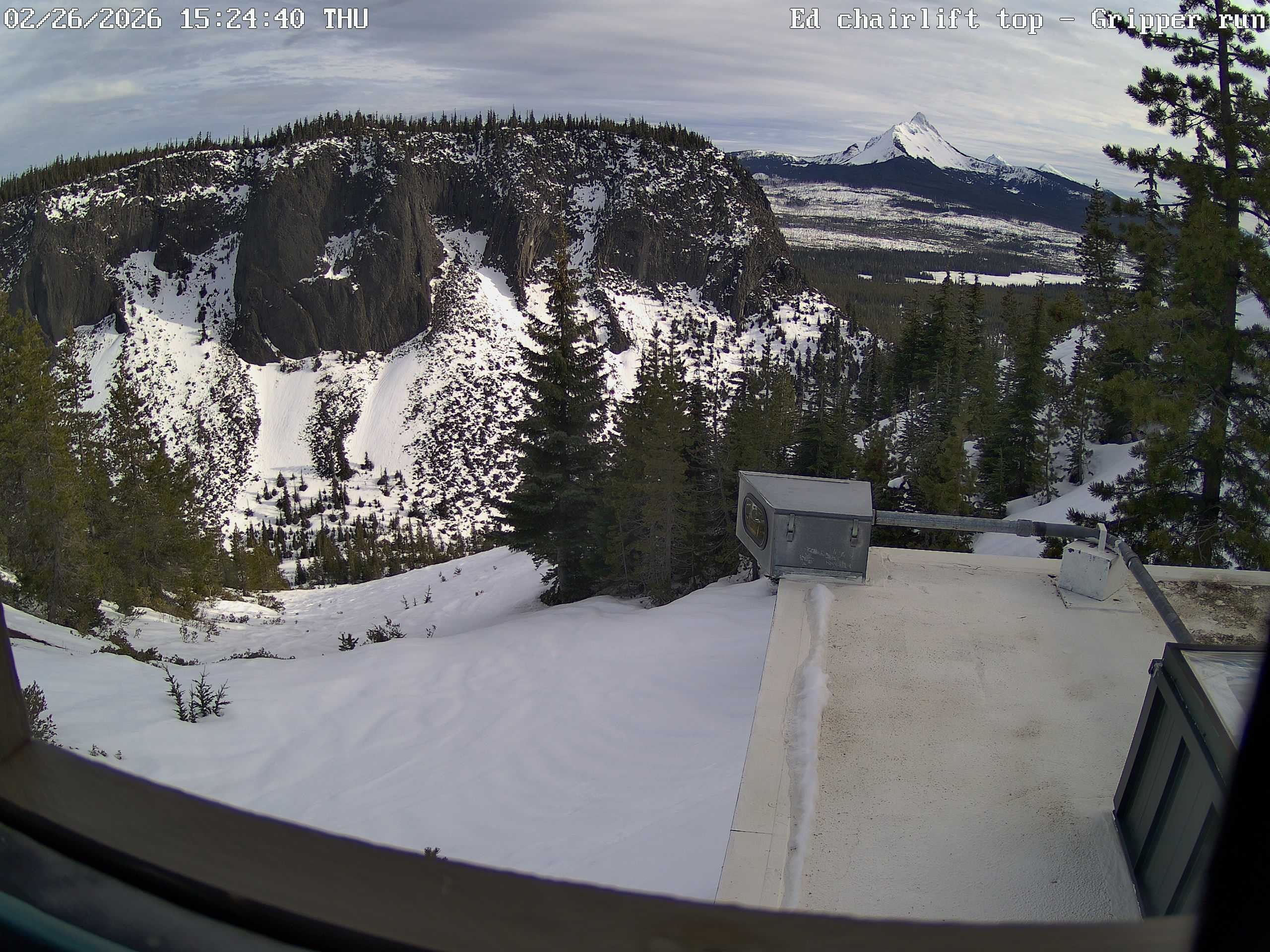 Von der Bergstation des Ed Chair Sessellifts im Skigebiet Hoodoo eröffnet sich der Blick in Richtung Südosten auf den Mt Washington, die Three Sisters und den Big Lake in Oregon, USA.