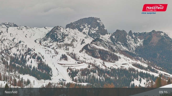 Archiviertes Webcam Bild: Nassfeld: Blick ins Skigebiet am 13.04.2026 um 09:11 Uhr Aktuell