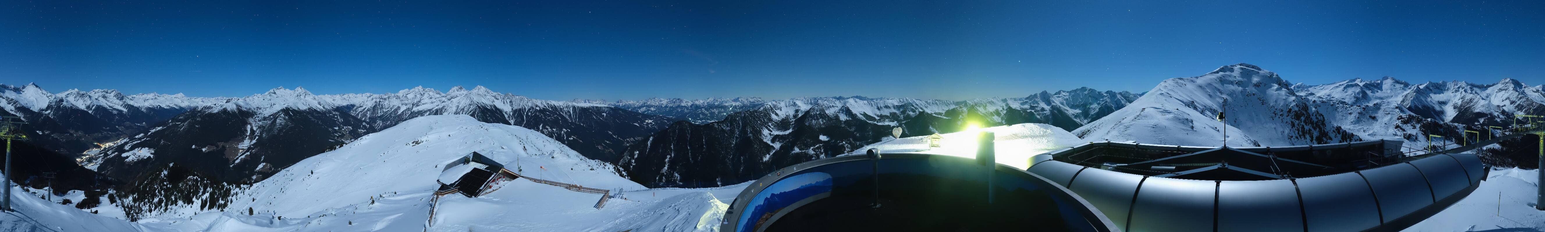 Panoramablick von der Bergstation Sonnklar im Skigebiet Speikboden. Dort in der Nähe befindet sich auch die Sonnklarhütte.
