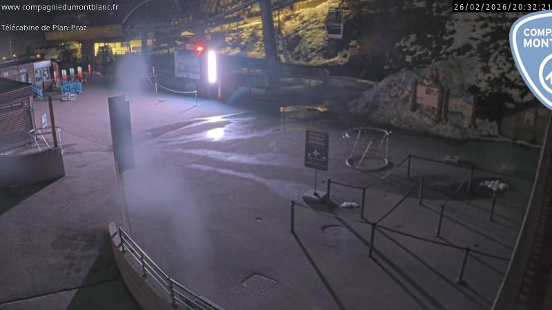 Die Webcam zeigt die Talstation der Planpraz Gondelbahn im französischen Skigebiet Charmonix Mont Blanc.