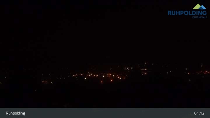 Toller Blick auf den Ort von Ruhpolding und das umgebunde Panorama der Chiemgauer Berge. Unter anderem ist die Ruhpoldinger Pfarrkirche St. Georg auf einer kleinen Anhöhe gut zu erkennen. Die Webcam ist im Ortsteil Bojern positioniert.