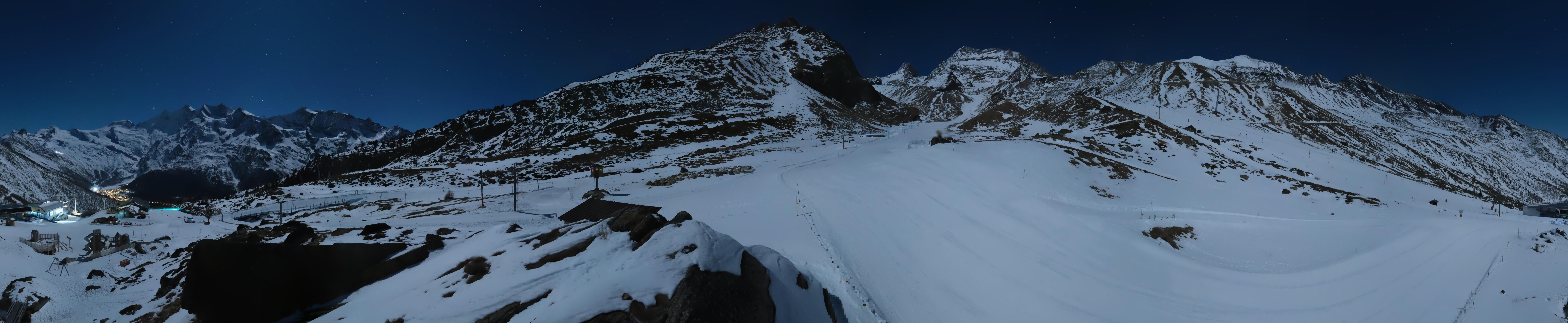 Die Roundshot-Cam befindet sich oberhalb der Mittelstation der Kreuzboden Gondelbahn im Schweizer Skigebiet Saas-Grund Hohsaas und bietet einen tollen 360-Grad-Blick auf das Skigebiet mit seiner fantastischen Berglandschaft.