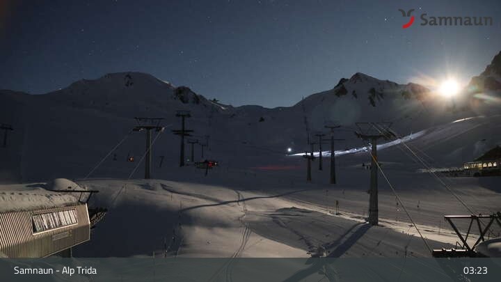 Webcam zeigt das Skigbeiet Samnaun, hier aktuelle Bilder vom Alp Trida in Blickrichtung Viderjoch.
