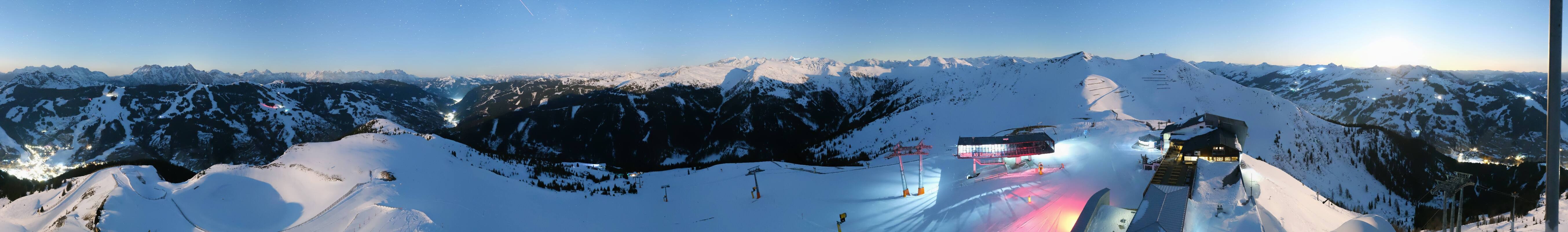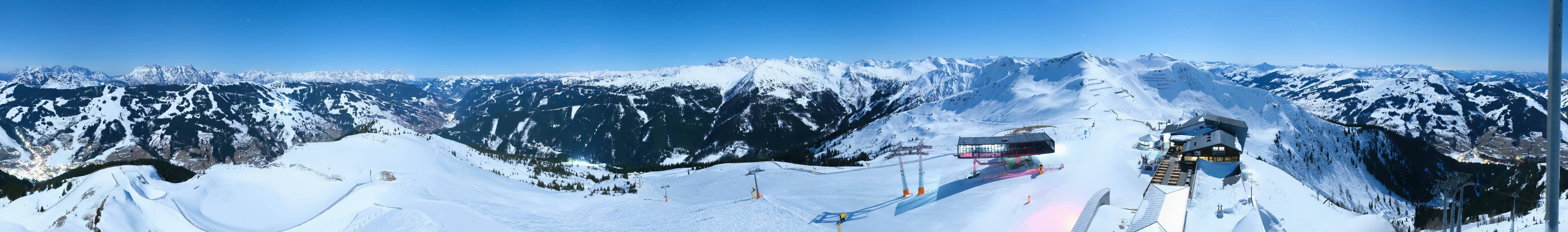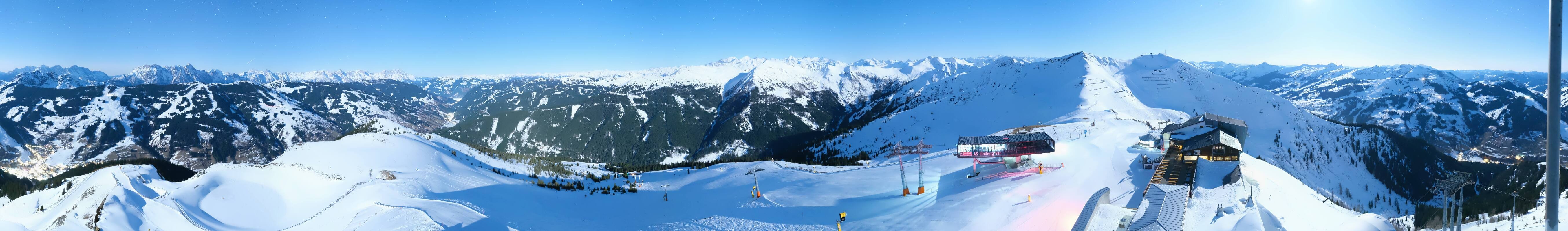 Webcam auf der Bergstation des Schattberg X-press II (2.010m) mit einem herrlichen 360-Grad-Blick über die Limberg-Abfahrt, Sky Rest und ins Tal nach Saalbach.