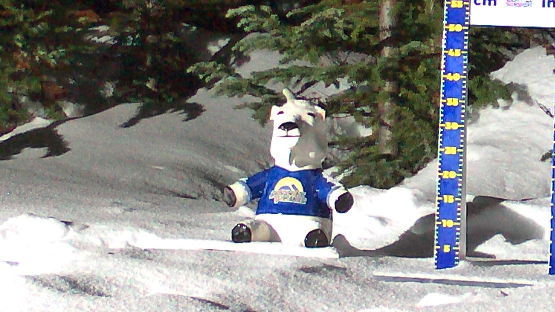 Die Webcam zeigt den aktuell gemessenen Neuschnee im Skigebiet Sunshine Village.