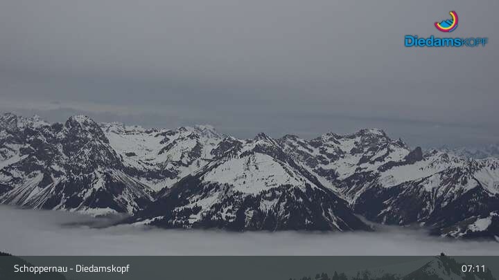 Archiviertes Webcam Bild: Schoppernau - Diedamskopf am 13.04.2026 um 07:03 Uhr 07:00