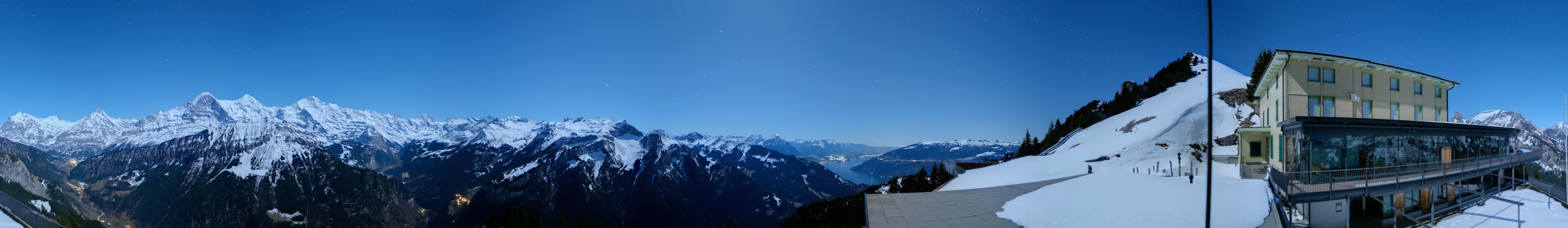 Diese Webcam ist auf der Terrasse des Hotels Schynige Platte positioniert und zeigt den Ausblick auf Eiger, Mönch & Jungfrau
