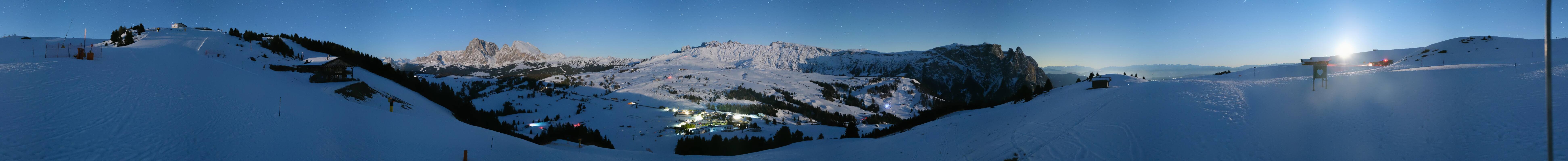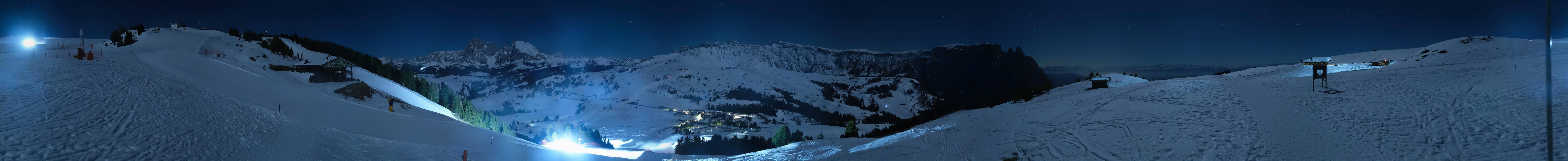 Rundblick über das Skigebiet auf der Seiser Alm und die umliegenden Berge vom Bereich Puflatsch aus. Ganz in der Nähe der Webcamstation befindet sich die Tschötsch Alm.
