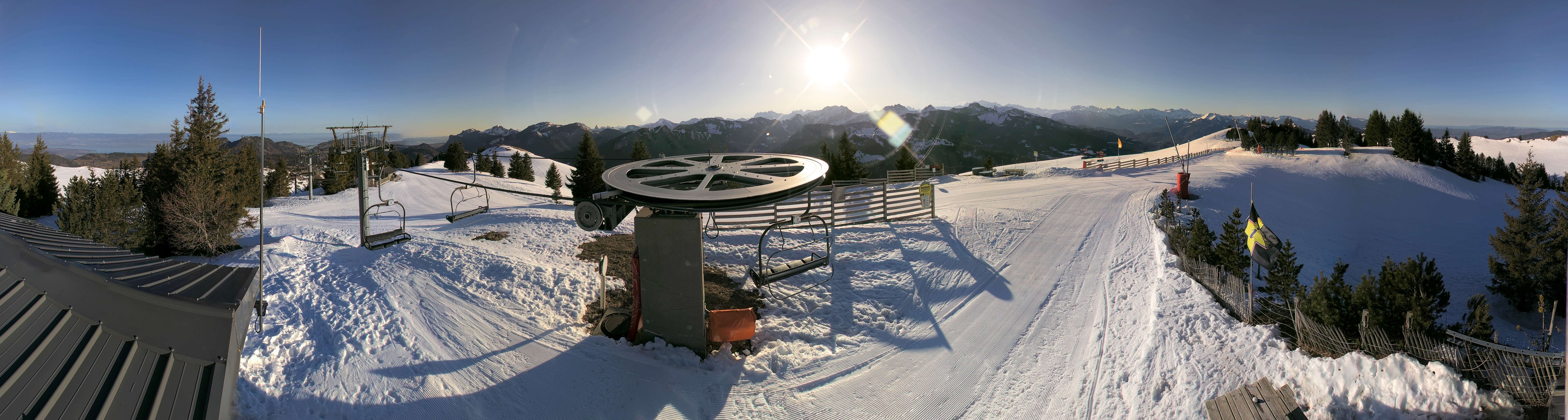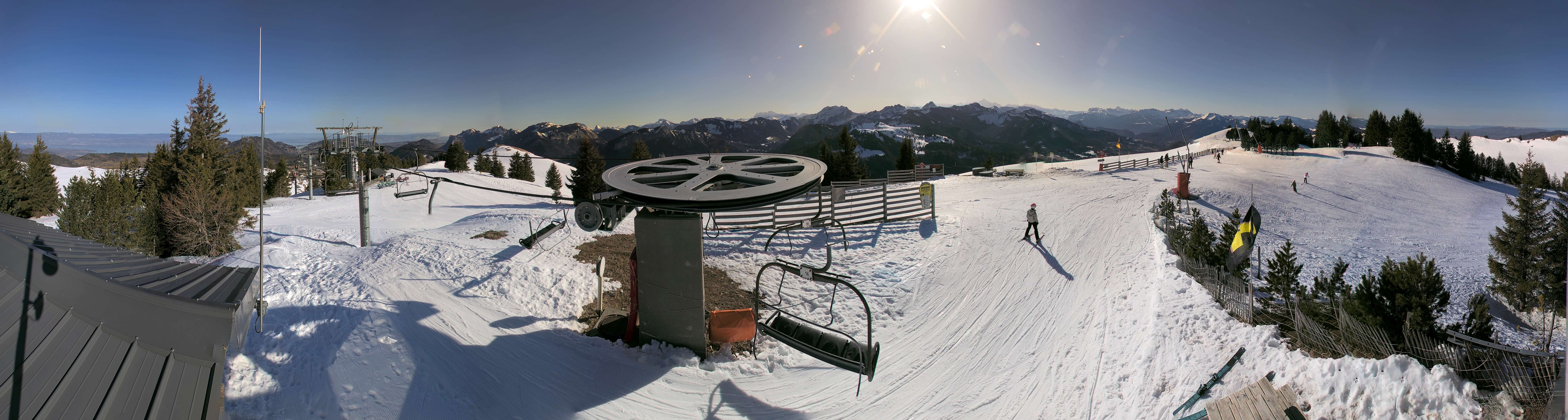Ausblick von der Bergstation des Télésiège des Crêtes im Skigebiet Bellevaux.