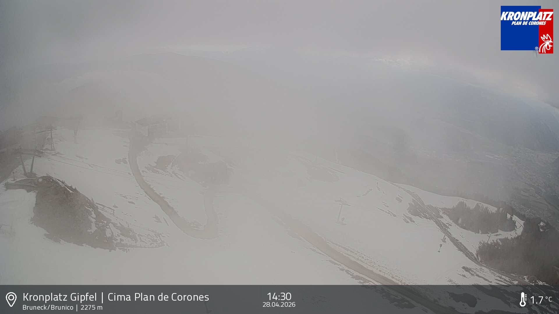 Archiviertes Webcam Bild: Kronplatz: Sicht auf Bruneck am 28.04.2026 um 14:01 Uhr Aktuell