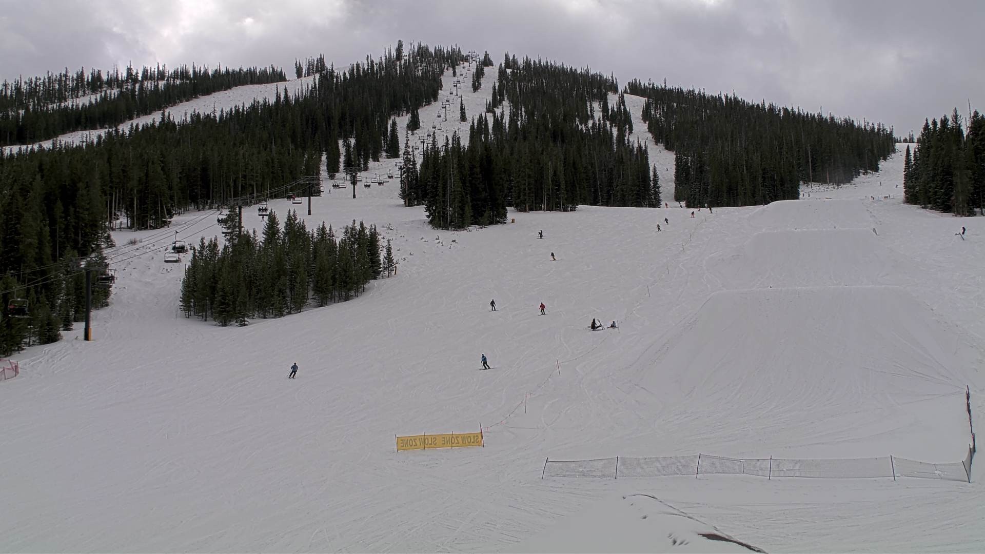 Die Webcam am Snoasis zeigt einen Teilbereich des Skigebiets Winter Park am Eskimo Express Lift.