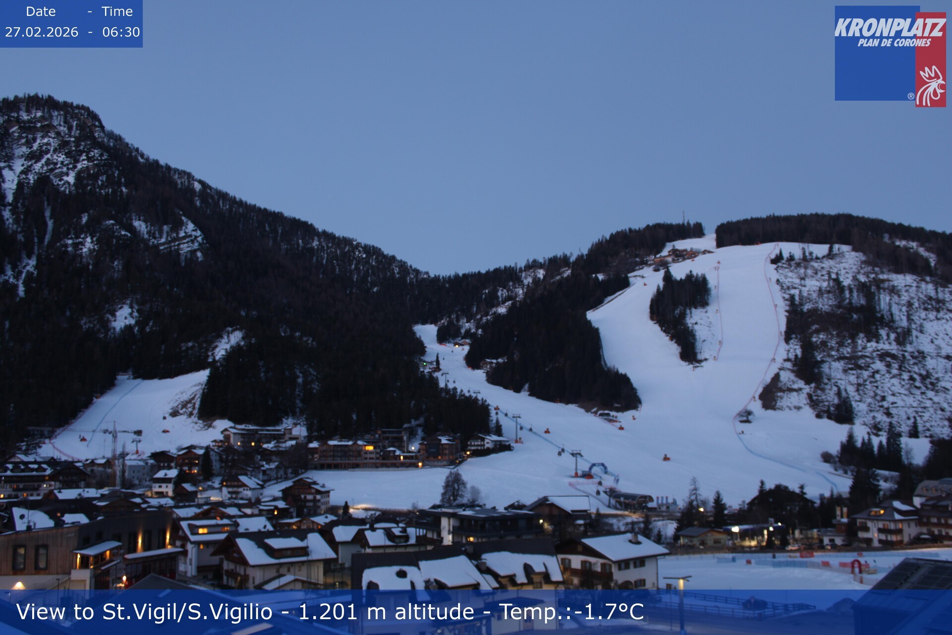 Archiviertes Webcam Bild: St. Vigil am Kronplatz - Weltcupstrecke am 27.02.2026 um 06:27 Uhr Aktuell