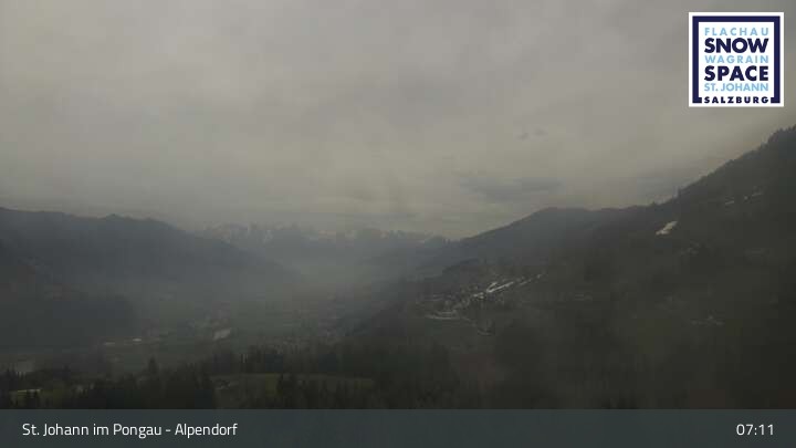 Archiviertes Webcam Bild: St. Johann-Alpendorf: Blick von Sulzau ins Tal am 13.04.2026 um 07:10 Uhr 07:00