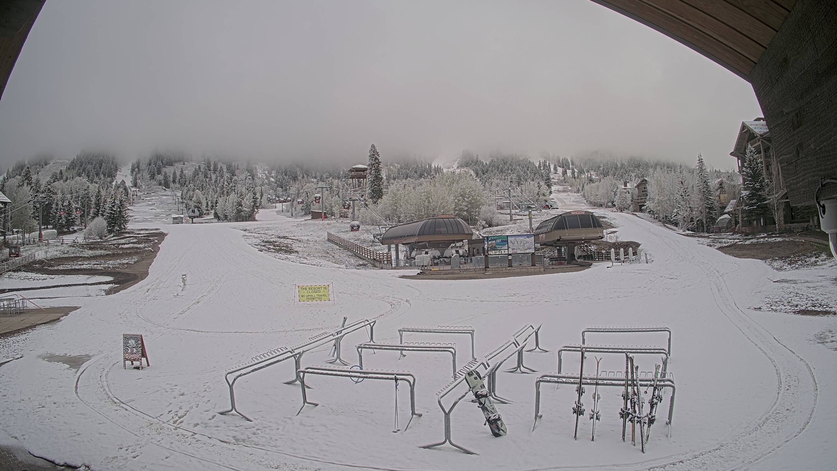 Blick auf die Talstationen der Lifte Sweetwater/Teewinot im Skigebiet Jackson Hole in Wyoming, USA.