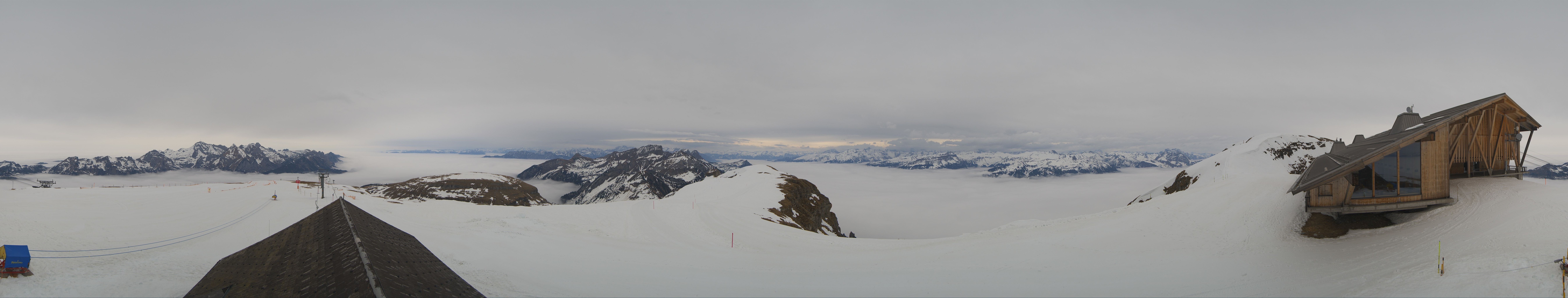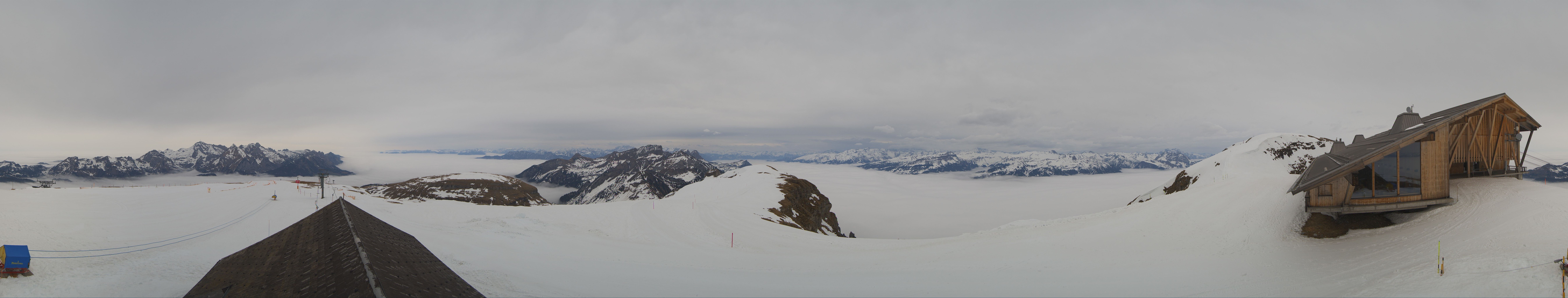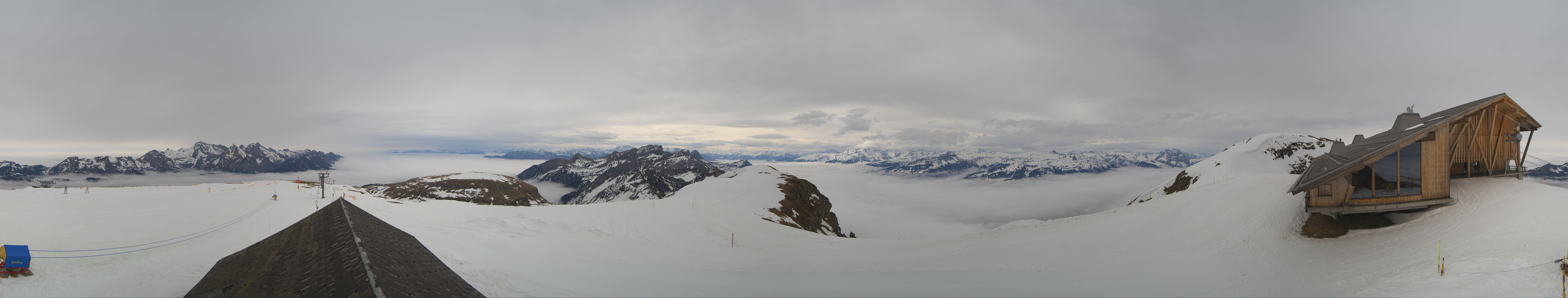 Direkt am Gipfel des Chäserrugg im gleichnamigen Schweizer Skigebiet gelegen, bietet die Roundshot-Cam einen fantastischen 360-Grad-Blick über die Churfirsten in der Region Toggenburg.